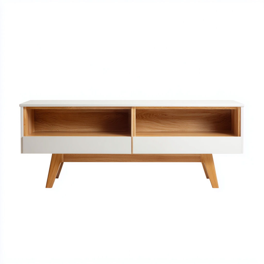 Fernseh Lowboard Holz 155x42x50 cm - Weiß-Natur - Modernes Design - Für Wohnzimmer
