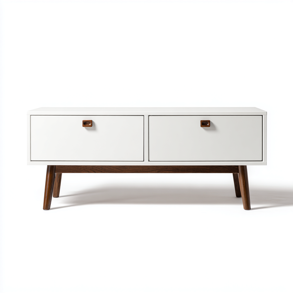 Fernseh Lowboard Holz 120x40x55 cm - Weiß-Natur - Modernes Design - Für Wohnzimmer