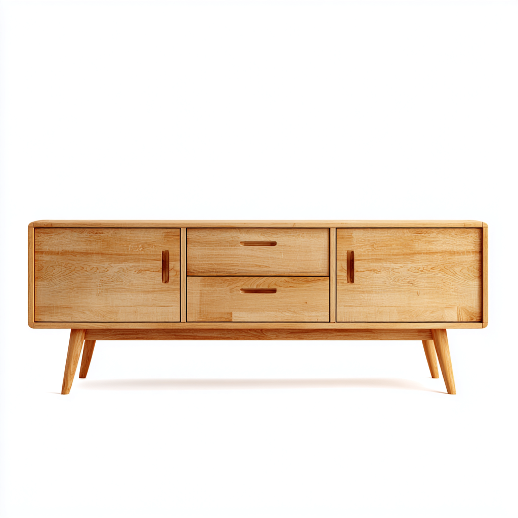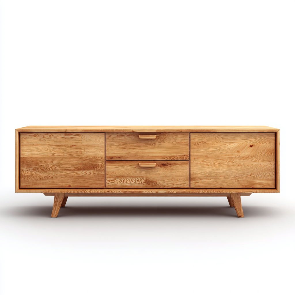 Fernseh Lowboard Massivholz 140x40x50 cm - Hellbraun - skandinavisches Design - für Wohnzimmer