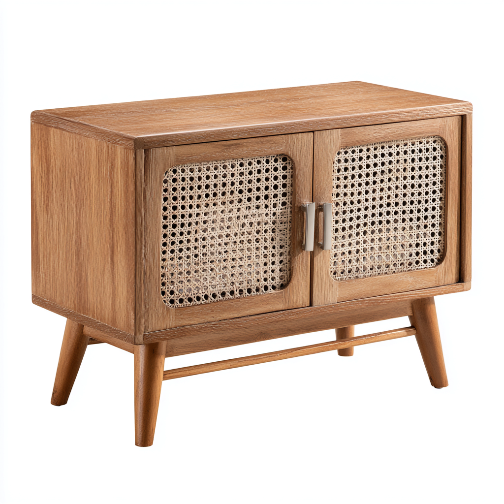 Fernseh Lowboard Holz-Rattan 70x35x55 cm - Braun - skandinavisches Design - für Wohnzimmer