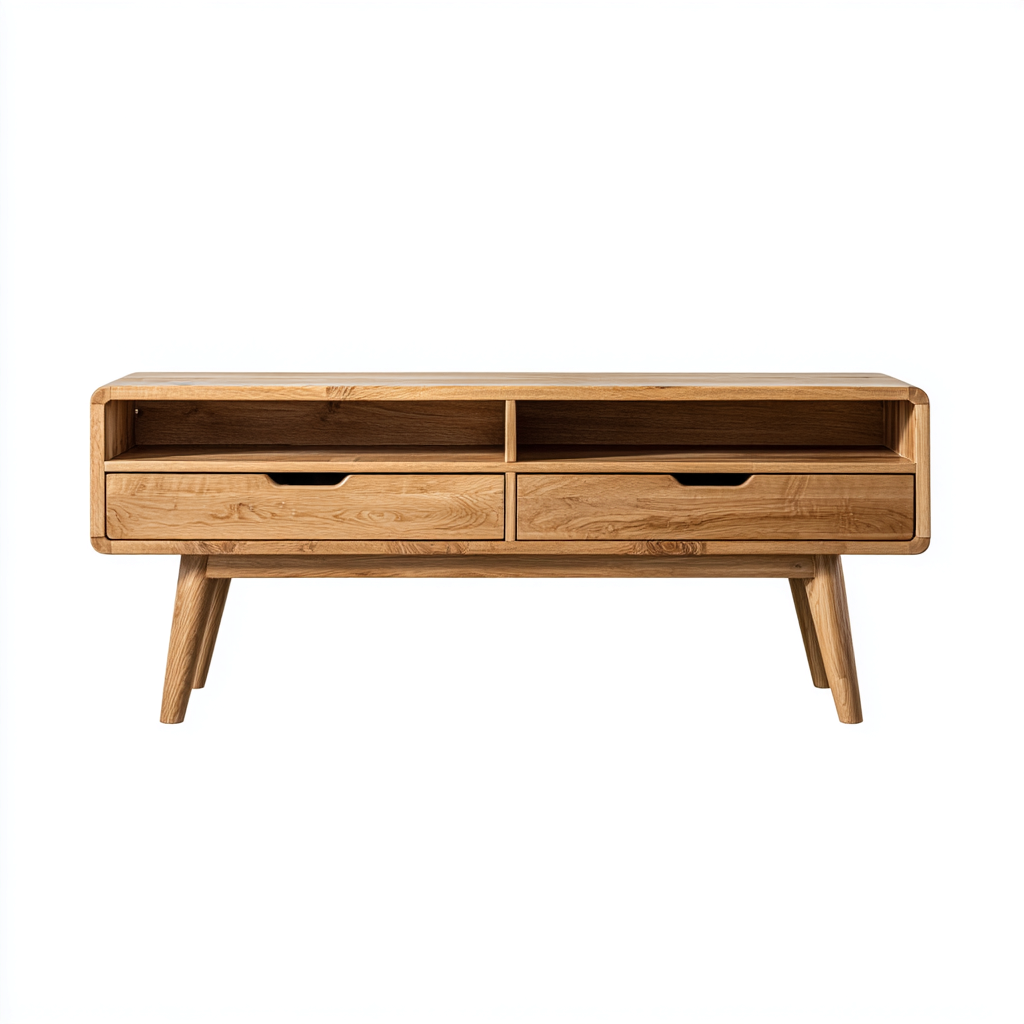Fernseh Lowboard Massivholz 100x40x50 cm - Hellbraun - skandinavisches Design - für Wohnzimmer