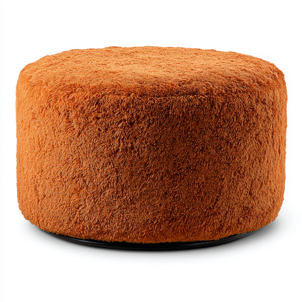 Fußhocker - Shaggy-Stoff-Metall - 50x50x40 cm - Orange - Modernes Design - geeignet für Wohnzimmer