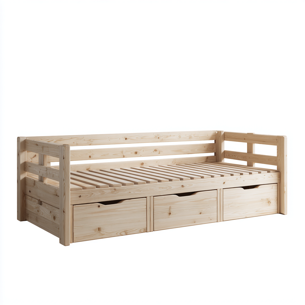 Schlafsofa Massivholz 205x98x90 cm - Natur - Skandinavisches Design - Für Schlafzimmer