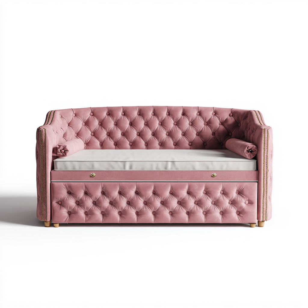 Schlafsofa Samtpolsterung 200x95x90 cm - rosé - für Schlafzimmer geeignet - elegantes Design