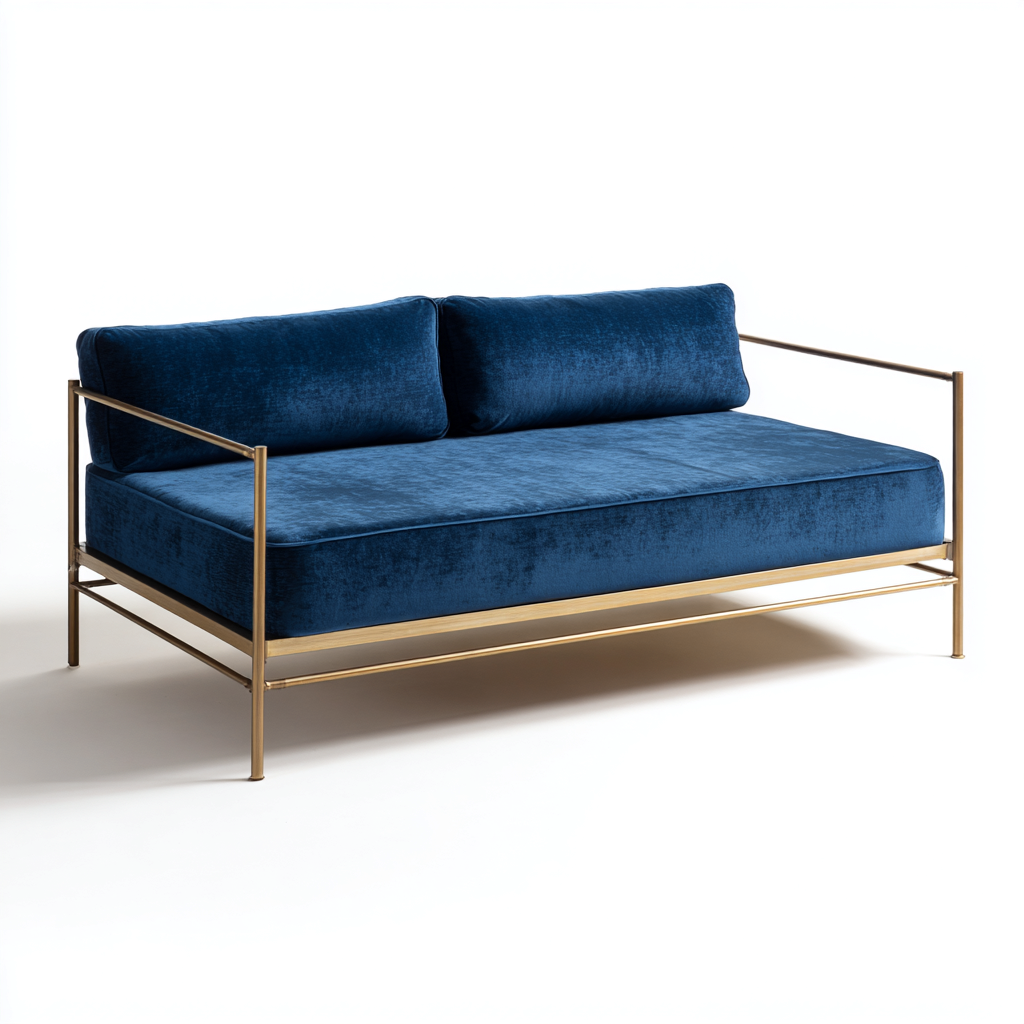 Schlafsofa - Samt und Metall 205x88x80 cm - blau-gold - für Schlafzimmer geeignet - modernes minimalistisches Design