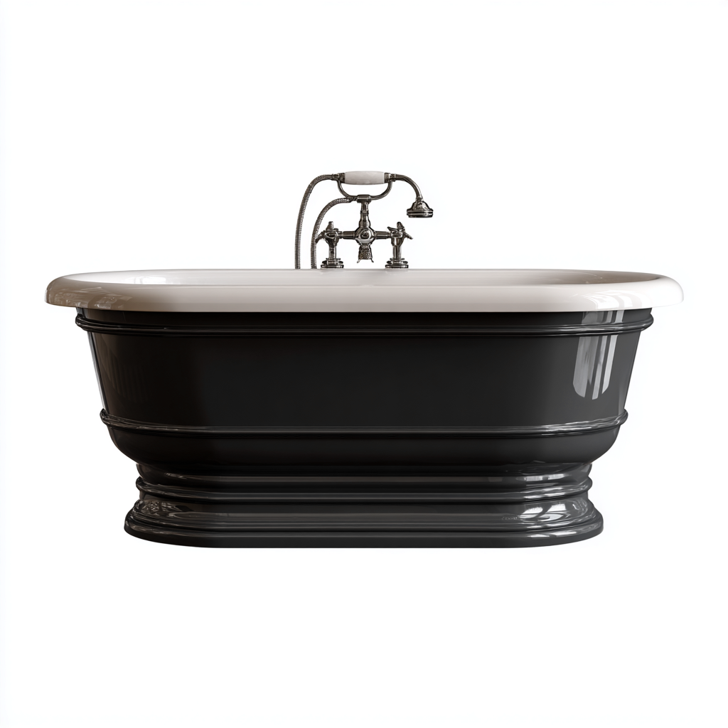 Diese freistehende Badewanne verbindet ein klassisches Design mit hoher Funktionalität und bietet ein komfortables Badeerlebnis im modernen Badezimmer. Die geschwungene Form und die elegante Zweifarbkombination machen sie zu einem stilvollen Mittelpunkt des Raums.