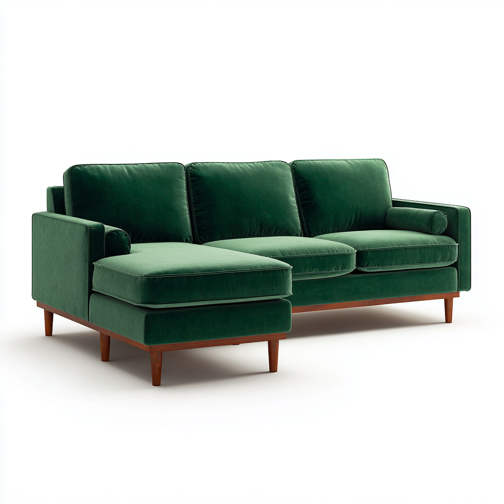 Dieses Ecksofa aus weichem Samtstoff vereint modernen Komfort mit eleganter Optik. Die großzügige Polsterfläche bietet ein angenehmes Sitzgefühl und wertet das Wohnzimmer optisch auf.