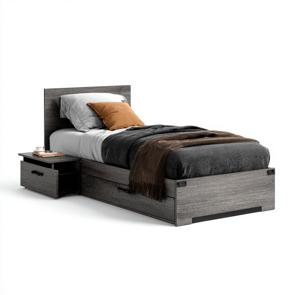 Gefertigt aus robustem Holzwerkstoff in dunkelgrauer Holzoptik, überzeugt das Bett durch seine pflegeleichte, gleichmäßige Oberfläche. Die stabile Konstruktion sorgt für zuverlässige Nutzung im täglichen Gebrauch.