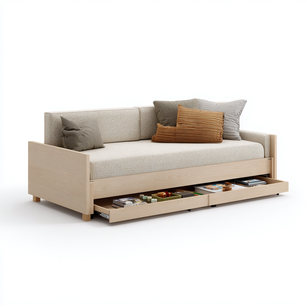 Dieses Schlafsofa vereint eine klare Formensprache mit hoher Alltagstauglichkeit und eignet sich besonders für Schlafzimmer oder Gästezimmer. Die integrierte Liegefunktion und das harmonische Erscheinungsbild machen es zu einer praktischen Ergänzung für moderne Wohnräume.